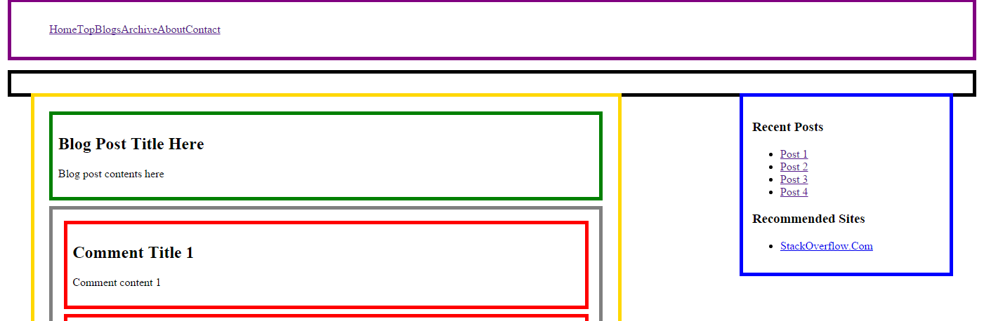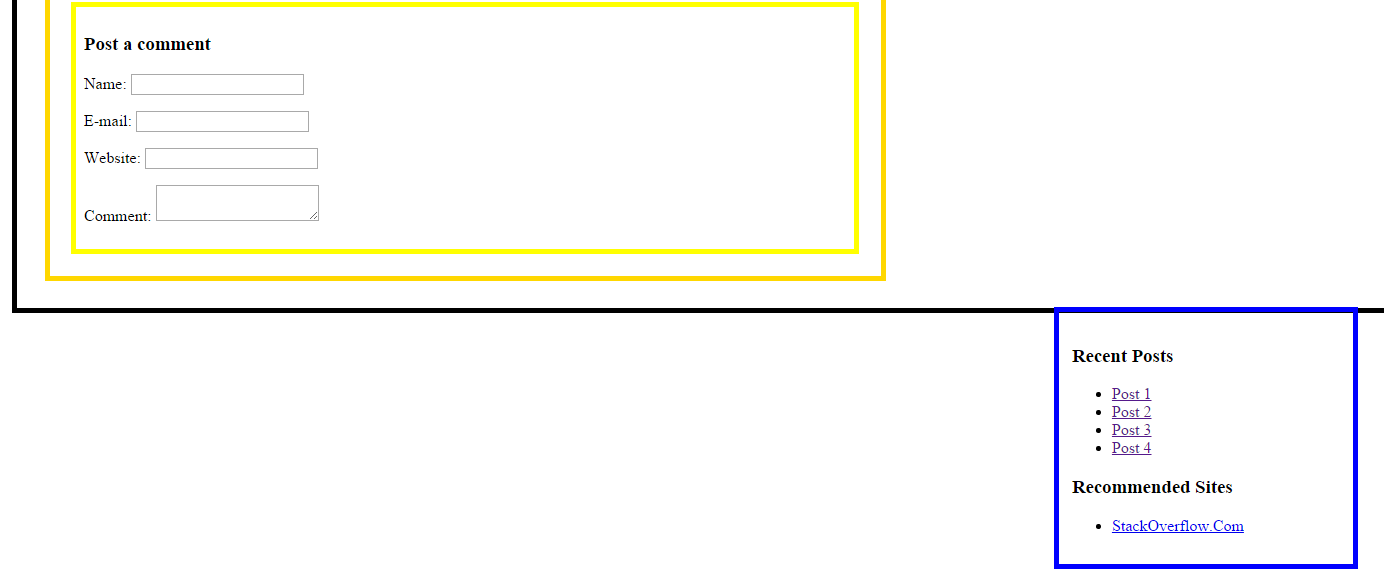 我对CSS (第一次体验)有问题,试图对我创建的部分进行调整。我有一个主<section>,坐在其他几个嵌套的<section>'s和一个<aside>里。我试图把<aside>放到页面的右边,而在彩色边框内。图片显示了我想要的东西。
