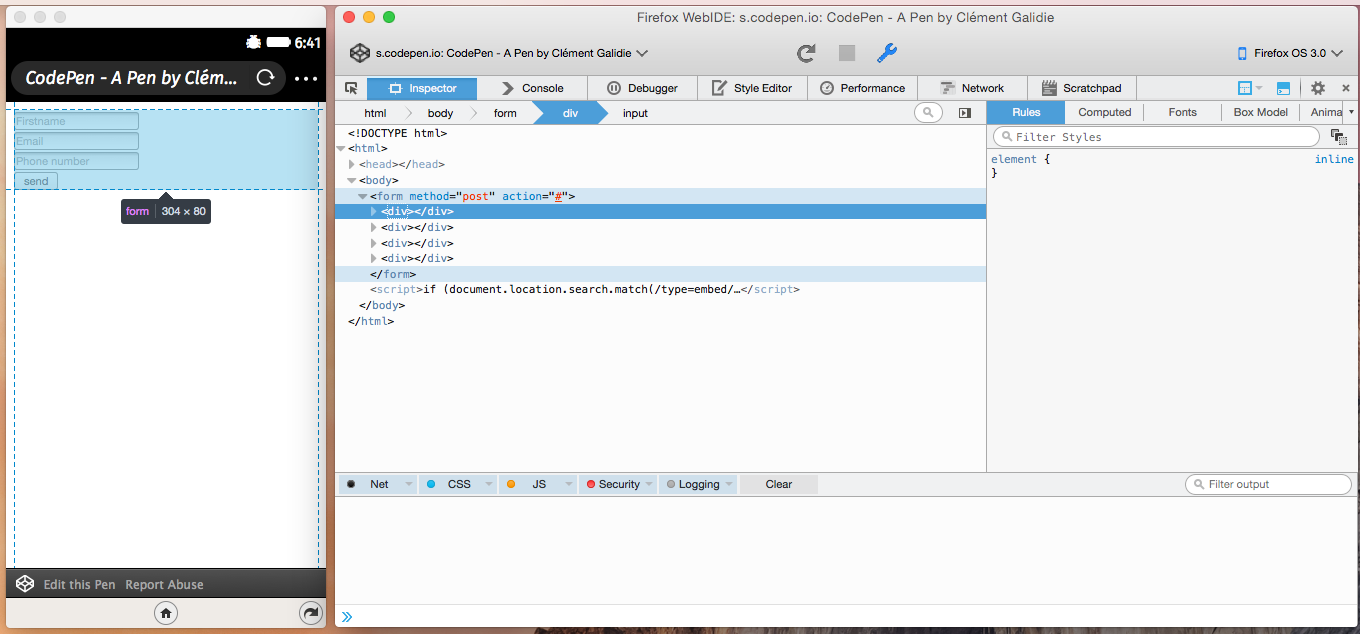 我想做的是:我有一个基本的网页(mostyl HTML,CSS和JS)打开在我的浏览器在我的火狐操作系统电话。我希望获得devtools (Cmd+Shift+i),并能够在我的iMac上使用我的浏览器编辑该网页。