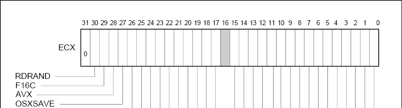 你看错了ECX寄存器。未设置RDRAND位。第30位是左边的第二个位: