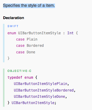 如果你能读苹果文档,那么你就能找到答案。就像par文档一样,这个边框、普通的和完成的是一个,它指定了项的样式。