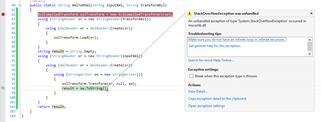 XslCompiledTransform xslTransform = new XslCompiledTransform(false);