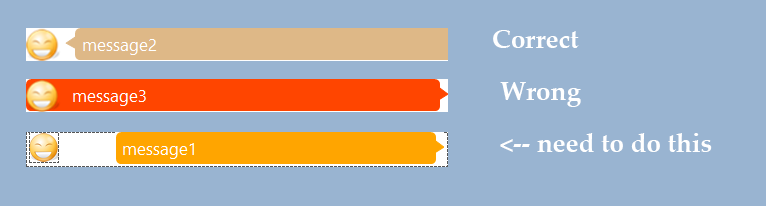 刚刚注意到,我标记为“正确”的图像中的棕色指示符实际上几乎是正确的。信息气泡的右侧应该有圆角,如红色和橙色信息的左侧所示。