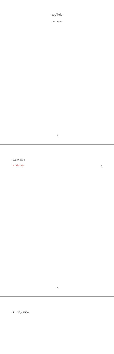 注意:元数据中的documentclass: report将自动将toc与标题分开,但不允许将其与文档的其余部分分开。