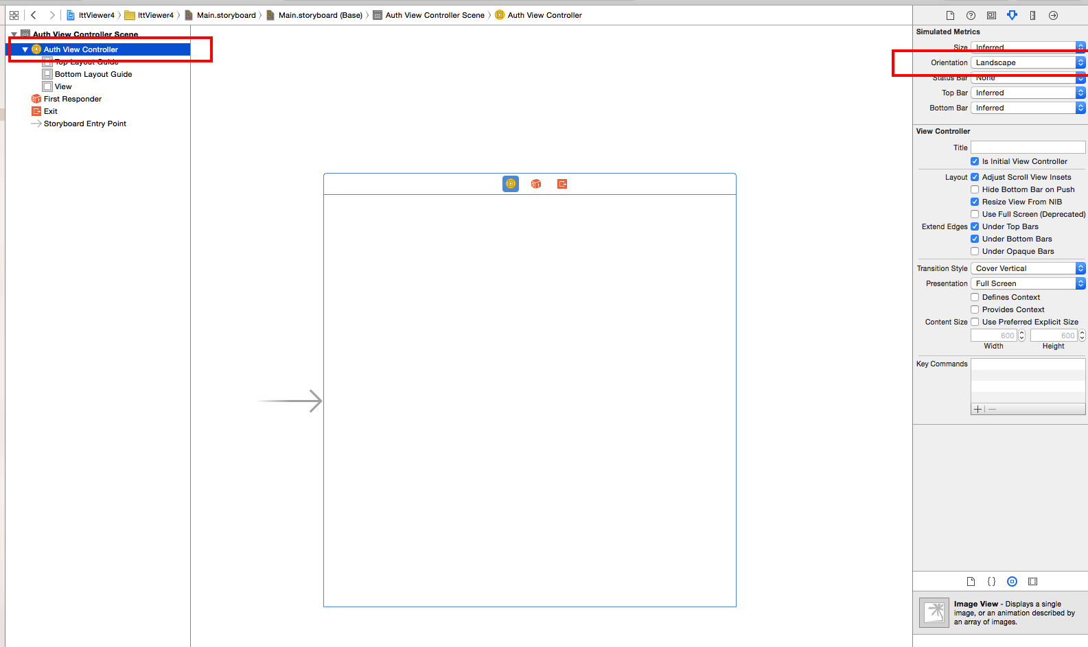 然后在故事板中,我把方向设定为景观,但我不知道为什么景观不变成景观?