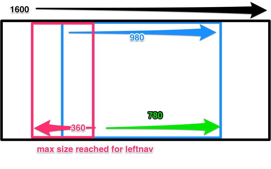 为了说明我的想法,这里是前后图像,黑色表示外部页面,蓝色表示页面容器,粉色表示左侧导航,绿色表示容器的其余部分。
