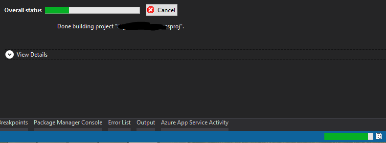 现在,当发布web应用程序时,VS在发布时会陷入困境(不会挂起,但也不会进展)。