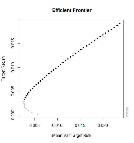 50 0.0191 0.0237 0.0370 0.0370看来现在起作用了。因此,让我们绘制有效的边界:
