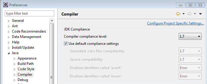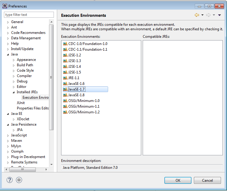 实际上,这个JRE并没有显示在任何<= JSE1.7的执行环境中。同样的屏幕,但现在露娜显示一切都是正确的,所以我想我没有做错什么。