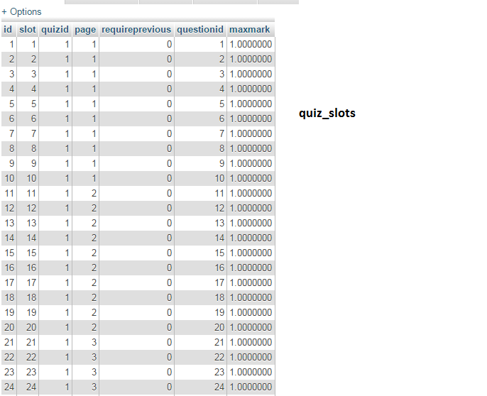 $quizslotids = $quizslotsrslt['questionid'];