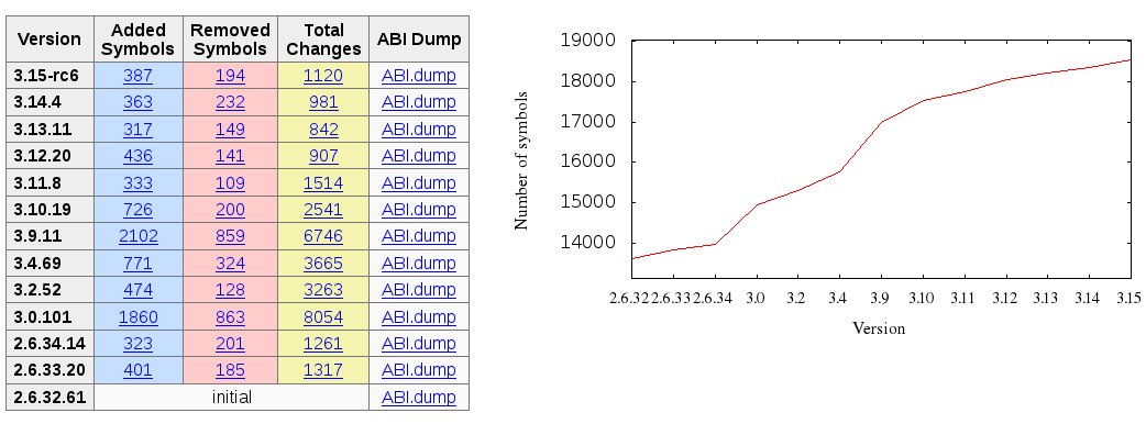 abi-compliance-checker -l vmlinux -old vmlinux-ABI-0.dump -new vmlinux-ABI-1.dump