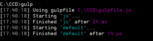 我遵循本教程来安装Gulp并配置一个gulpfile.js来连接和缩小JavaScript文件。我正在使用一台Windows7机器。当我运行gulp命令时,我得到以下输出: