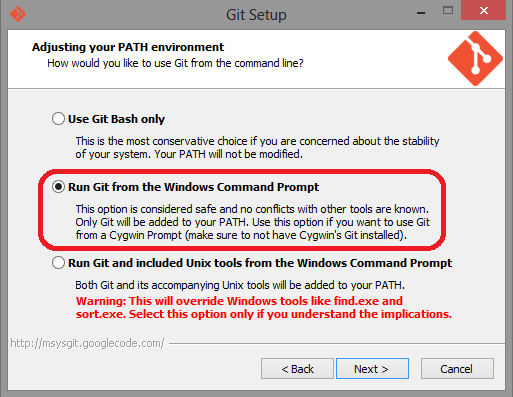 或者,您可以使用此选项(重新)安装git,然后在命令promt (全局路径)中可以使用git。