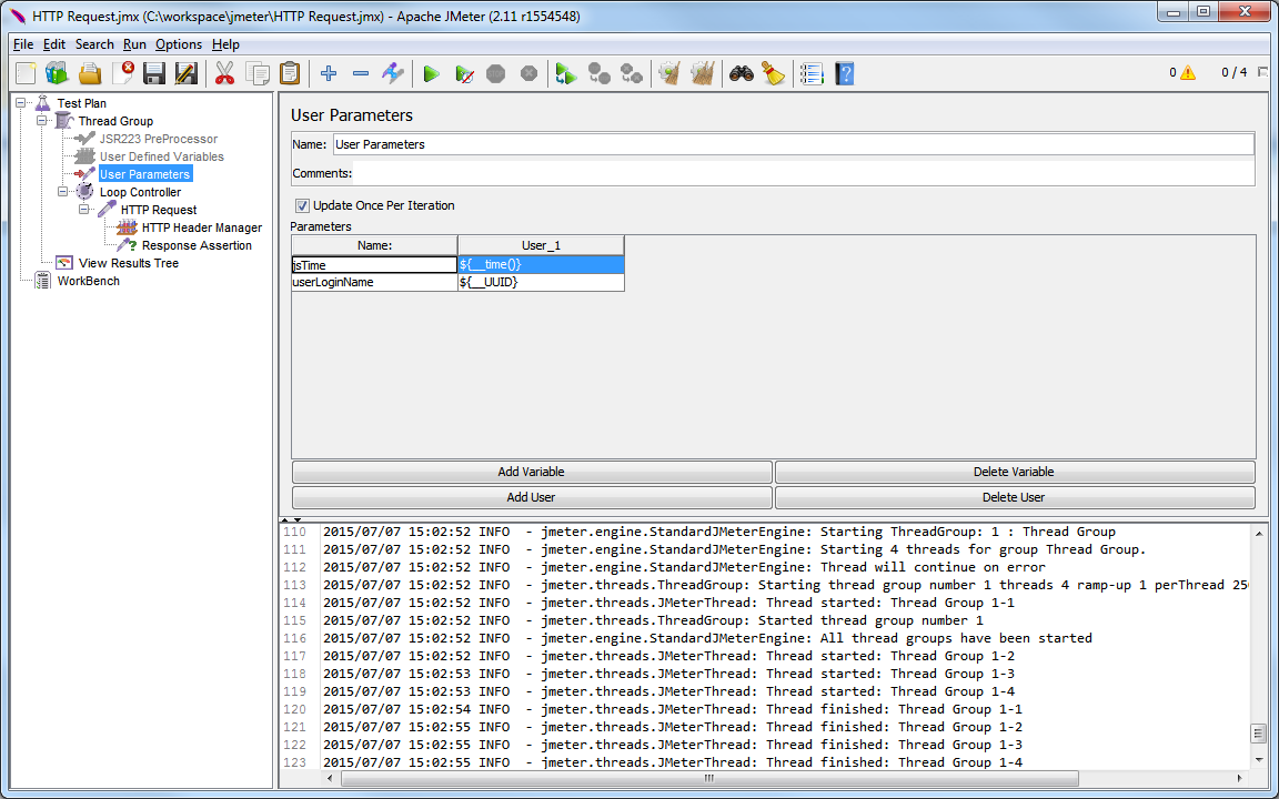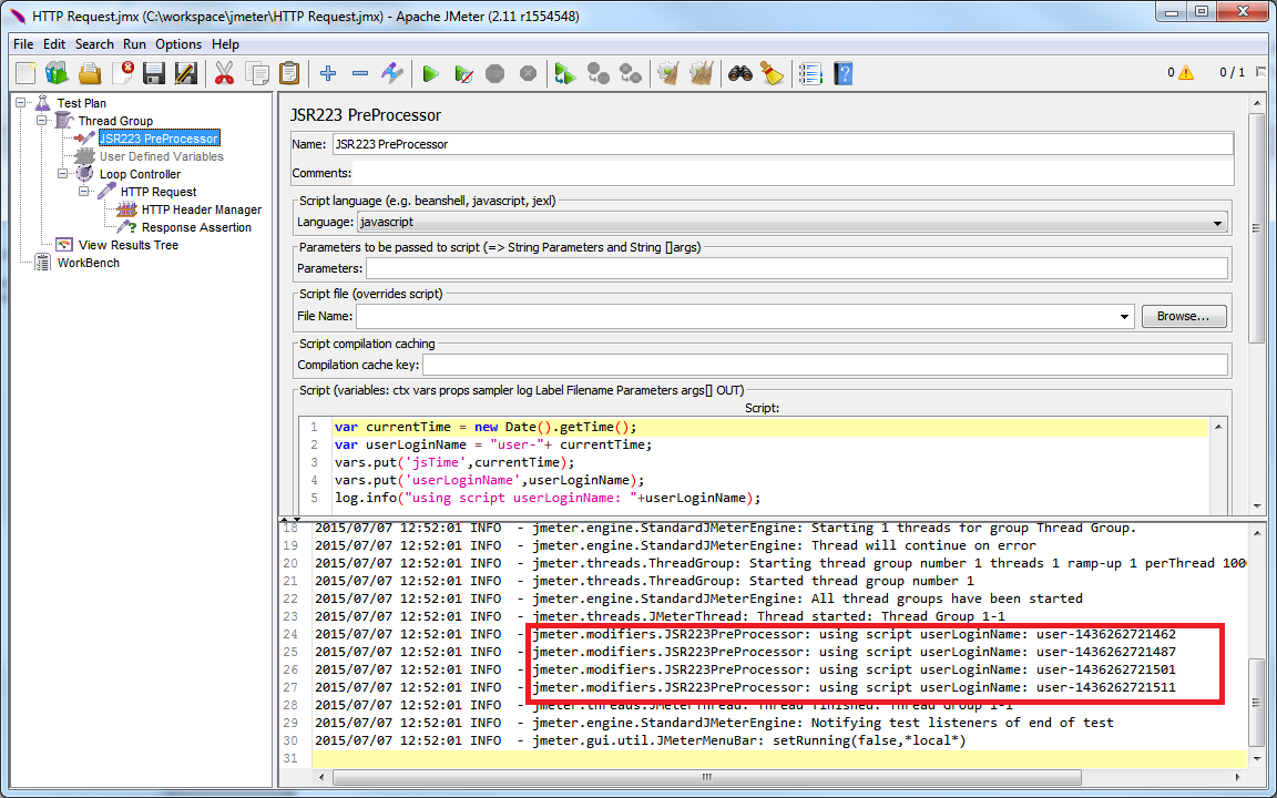 预处理器附加到一个取样器元素(例如,在本例中是http请求),然后它将在运行So 4请求的样本元素之前执行不同的参数,因为它在每个请求之前运行。