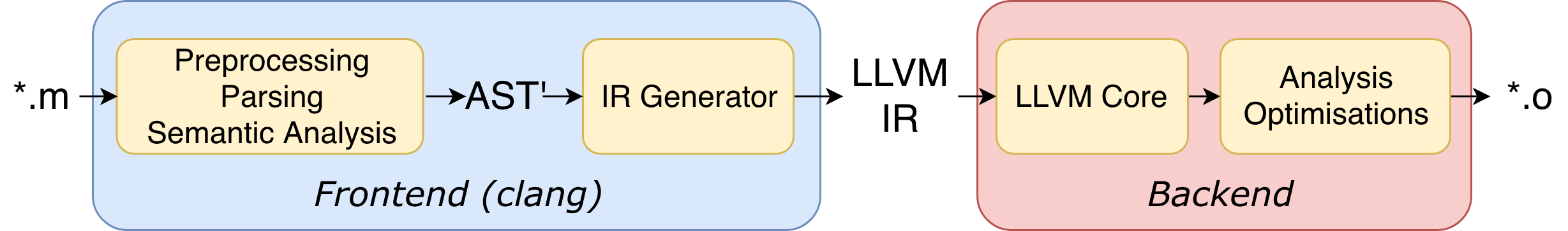 Objective使用Clang编译器编译代码。因此,对于好的旧ObjC代码,管道如下所示: