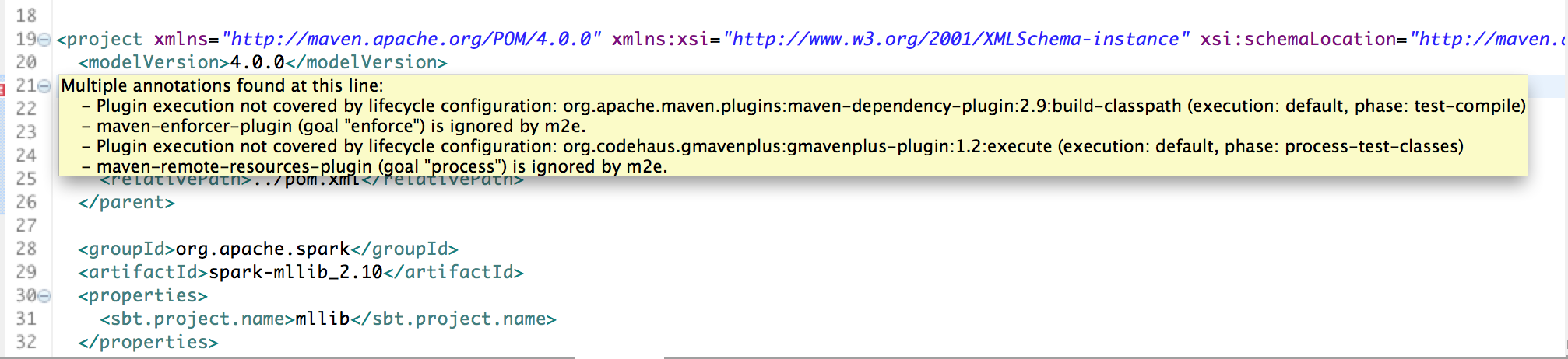 我检查了apache项目,试图构建mllib_2.10。但是,我得到了以下错误。我错过了什么?谢谢!