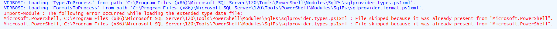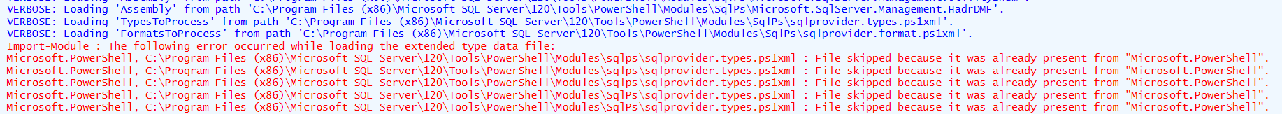 说有些文件已经存在了。此错误是否阻止我加载模块?当我执行Get-Module时,它不会列出SQLPS模块。