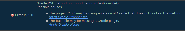 一切正常,但是如果我尝试添加测试库依赖项,我发现不再支持androidTestCompile方法。如下所示: