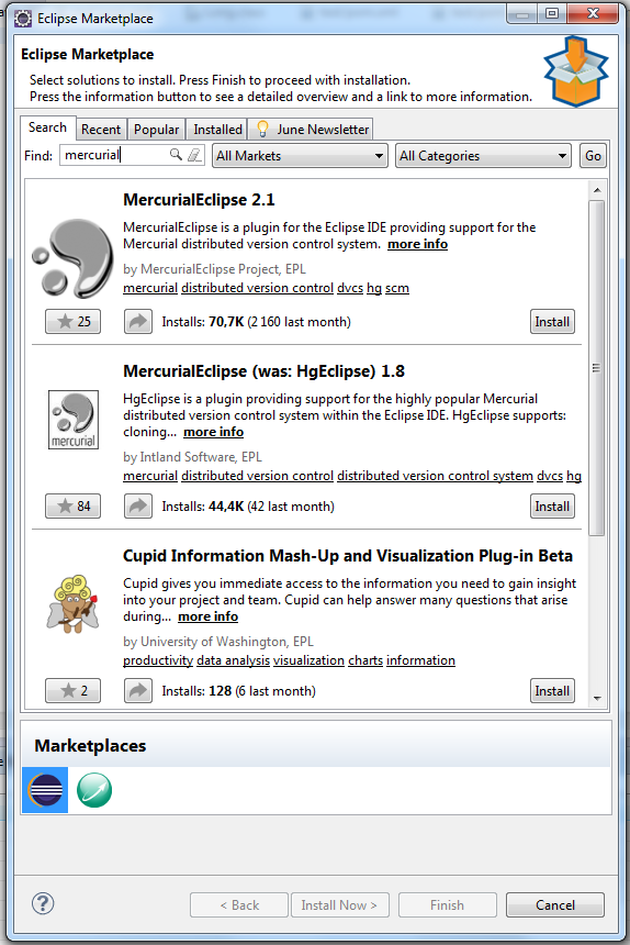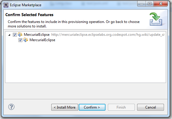 单击Mercurial Eclipse的安装按钮,勾选复选框,然后单击确认。