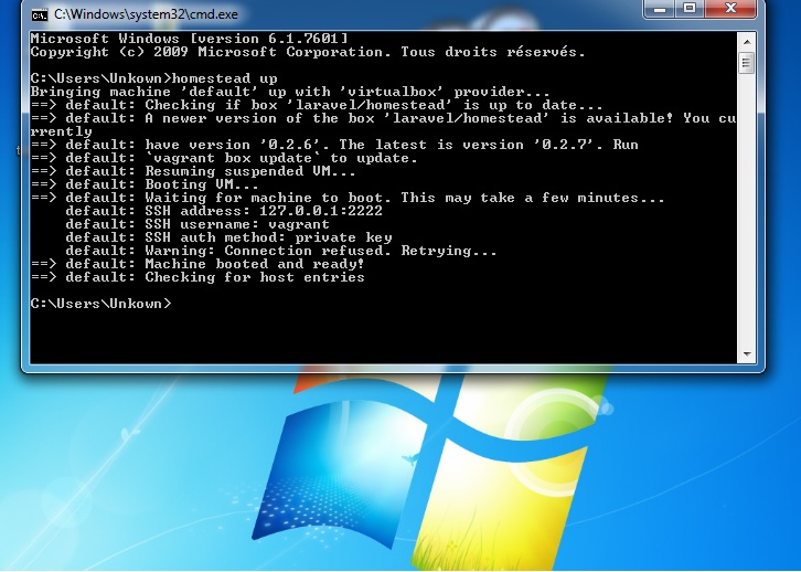 C:\Users\Ezra\Desktop\Homestead>vagrant up