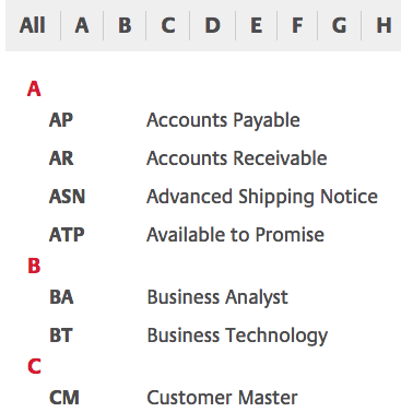 {type: 'B', acronym: 'BA', title: 'Business Analyst'},