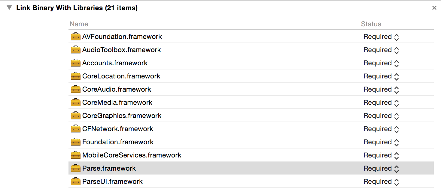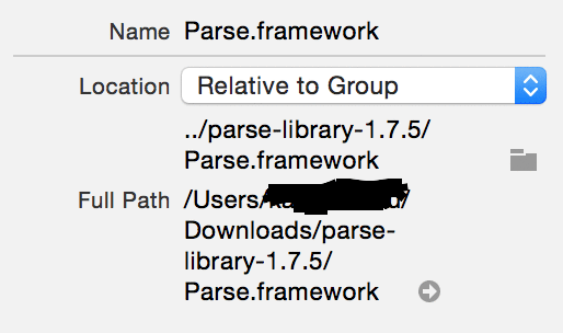 按照建议,我从我的项目框架中删除了Parse,并再次导入它。确保选中“相对于组”而不是文件夹。