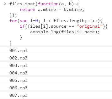 因此,您可以使用JavaScript对其进行排序(在拉动response.files之后将其放在右):