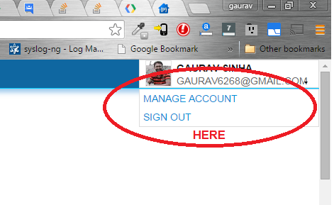 下拉列表中有两个项:Manage Account和Sign Out。