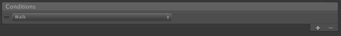 }另外,您不需要Animator中的Animator变量来触发游走动画,因为您已经在使用W了。