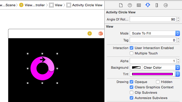 @property (nonatomic) IBInspectable CGFloat angleOfRotationInDegrees;