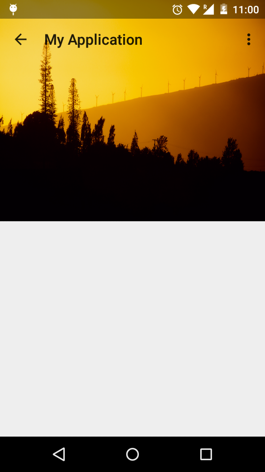 我使用过来自ScrimInsetsFrameLayout的GoogleIO应用程序。把我的英雄形象围绕在这个版面上。添加了适当的造型在我的主题。这就是我得到的