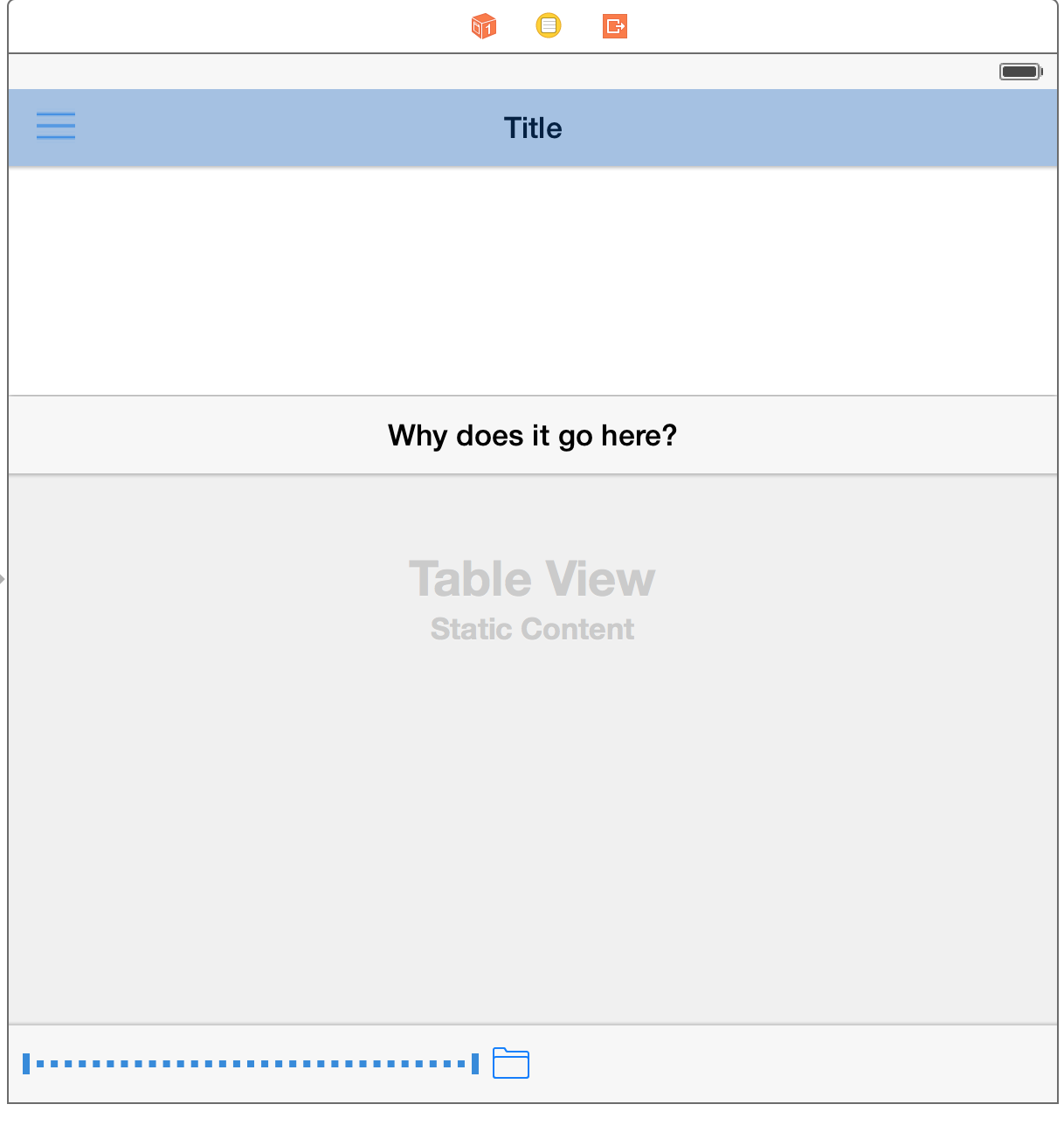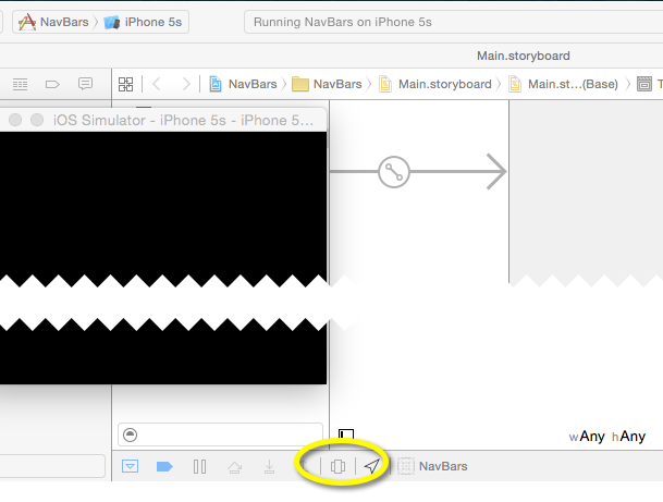 在回答下面的问题时,在sim中运行的应用程序和在界面生成器上运行的应用程序的按钮应该位于底部。您可能也想在这里阅读一下:调试视图