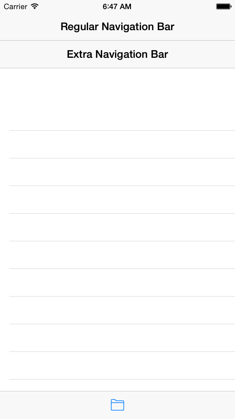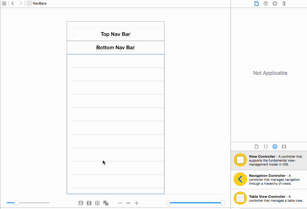 不要添加另一个导航栏,而是在底部添加toolBar,然后可以向其添加条形按钮项。如果它在运行应用程序时没有出现在屏幕上(下面的工具栏),只需在viewcontroller.swift中创建工具栏的一个出口,然后执行以下操作