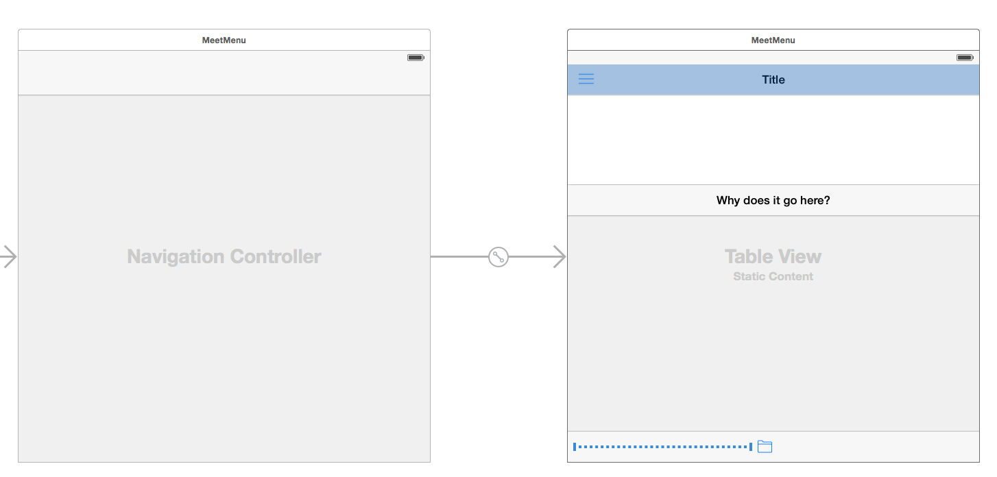 我做了一个navigationController,当我尝试添加一个额外的NavigationBar时,它只是在表视图中添加?(下面的照片)