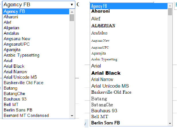 <option style="font-family: 'Agency FB'">Agency FB</option>