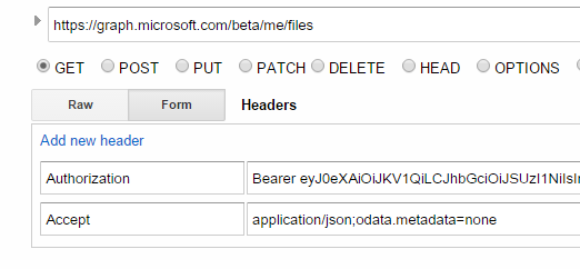 我将尝试将"Accept“头更改为”application/json;odata.data=minimal“。odata.metadata=none未出现在统一API的受支持MIME类型列表中。