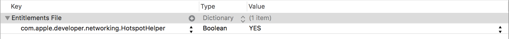 您首先需要通过电子邮件https://forums.developer.apple.com/thread/11807注册您的应用程序为Hotspot Helper