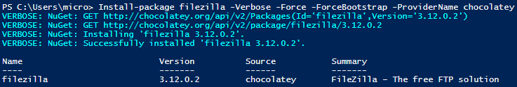 Install-package filezilla -Verbose -Force -ProviderName chocolatey收益率