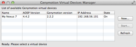 若要打开Genymotion虚拟设备管理器窗口,请执行以下操作: