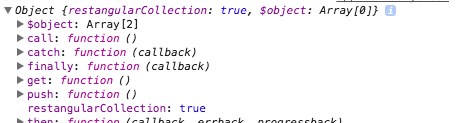 因此,myObject.$object[0]还不存在,您的控制器将无法访问它,直到您确定了一个promise.then()方法,该方法将返回一个新派生的承诺,该方法看起来就像您在控制台中看到的那个: