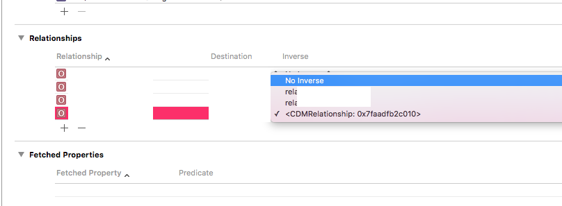 不幸的是,这个解决办法对我没有用。但是,我最近在核心数据中更改了一些表。我通过观察我所有的人际关系和他们的逆来顺受找到了罪魁祸首。其中一个反词有一个死角。切换到“没有逆”做了一个干净,并启动和运行再次。希望这能帮到别人。