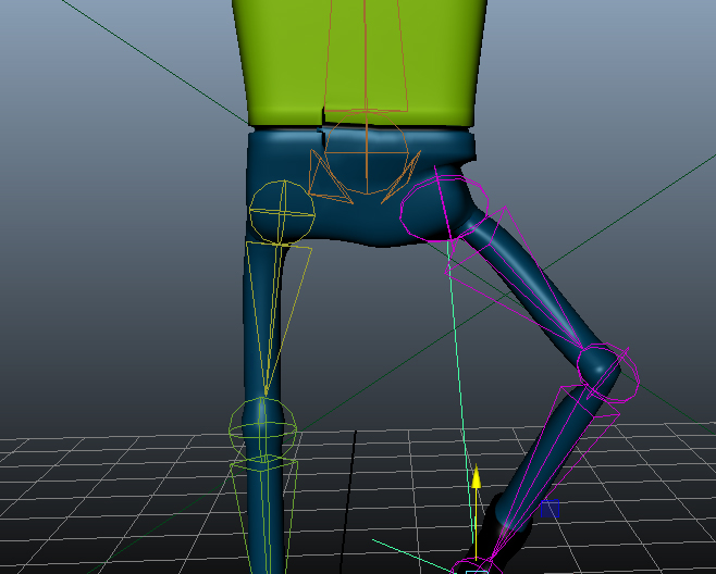 所以,在Autodesk Maya,我有关节连接到我的角色的身体。然后我放了一个IK手柄来做运动,但是在这种情况下,在腿上(见下图),运动发生了错误,因为当选择一个向上(x)的移动工具时,膝盖会向侧面,而不是前面。我该怎么纠正呢?