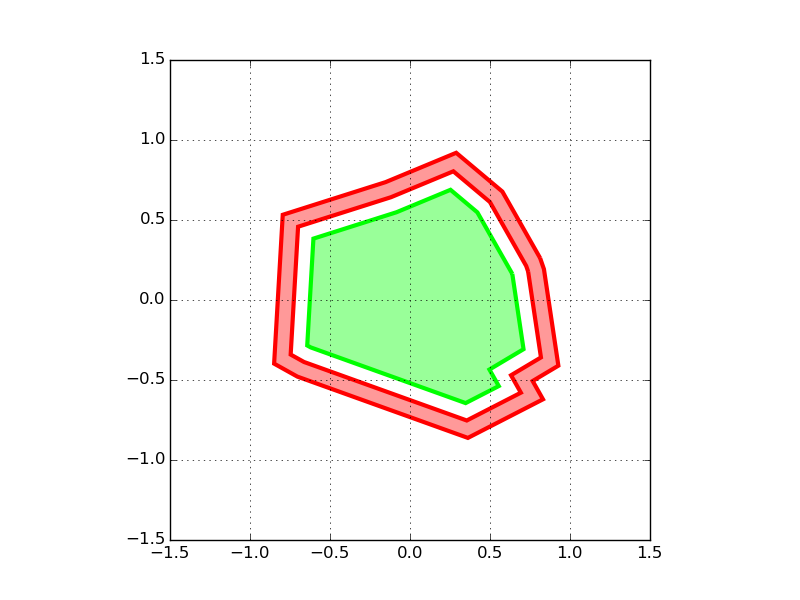 如何使用matplotlib绘制具有一定宽度的多边形,假设多边形将在外部以相同的形状和至少相同的宽度被包围,并在内部完全填充?