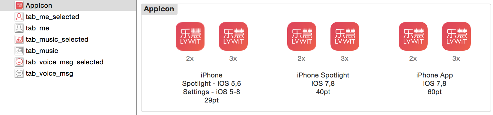 现在,我想使用Images.xcasset来存储我的所有图像源,这样我就能够只加载包名,并且希望系统能够自动选择正确的分辨率的图像。因此,我做了一个测试,将我的图像集放在Images.xcasset下,并将其命名为图像,然后在UIViewController.m中,我试图通过调用UIImage imageName:来加载图像。结果,它不起作用。因此,我搜索了一个答案,发现我应该调用[UIImage imageName:@"images60x60@2x.png"]来加载60pt @2x图像。