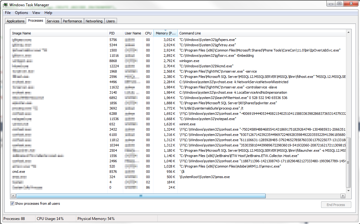 如您所见,在任务管理器中,当我启动一个新的cmd.exe时,命令行列中显示的值无效: