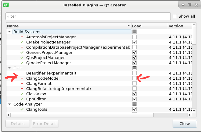 转到“帮助”>有关插件,取消检查ClangCodeModel。将激活代码完成和项目视图大纲。