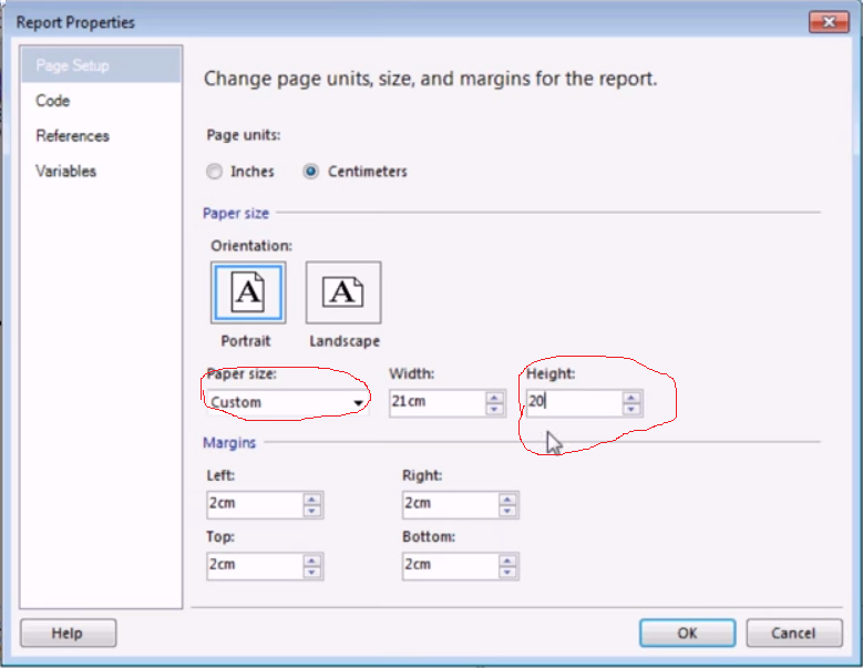 将Paper Size更改为Custom,将Height更改为所需的show the desired number of rows。