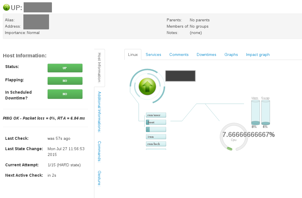 好的,我的问题是修改了主机检查,基本上是ping,但没有修改服务检查,这就是cpu和内存监视的处理方式。在这样做之后,一切都如预期的那样工作。