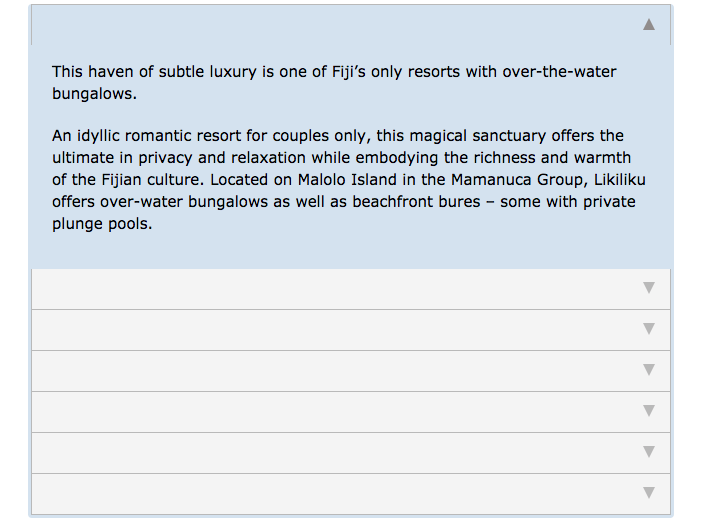 下面的代码以手风琴格式将信息加载到制表符中,并有望很快用于平板电脑和智能手机: