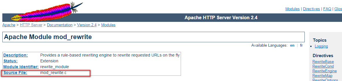 在外行人中,是的,IfModule条件检查是否加载了一个模块。是的,mod_rewrite.c是源文件。