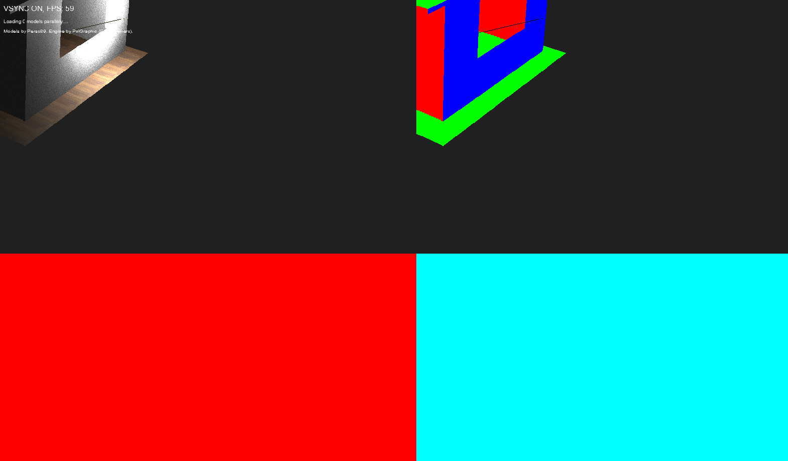 然后,我使用简单的后处理着色器渲染纹理(呈现来自第一遍+深度缓冲区的目标),只是为了调试目的(第二遍):